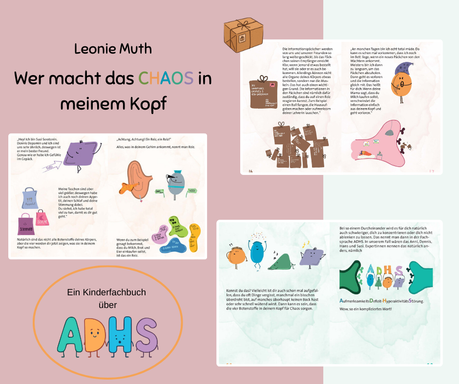 Kinder mit ADHS erleben ihren Alltag oft anders: Gedanken springen, Impulse sind stark und Konzentration fällt nicht immer leicht. Wer macht das Chaos in meinem Kopf? von Leonie Muth setzt genau hier an und möchte Kindern verständlich erklären, was bei ADHS im Körper passiert. Das Kinderfachbuch richtet sich an betroffene Kinder, ihre Familien sowie pädagogische Fachkräfte und versucht, komplexe Zusammenhänge kindgerecht greifbar zu machen.