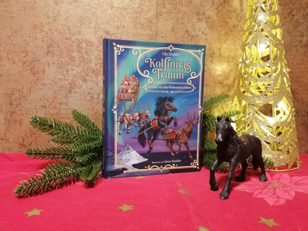 Kolfinnas Traum – Ein Pony vor dem Weihnachtsschlitten von Lilja Hindahl ist mir durch das zauberhafte Cover auf der Frankfurter Buchmesse ins Auge fallen. Eigentlich wollte ich es schon etwas früher empfehlen, damit ihr es euch gleich zu Beginn der Weihnachtszeit zulegen könnt, aber das Leben läuft eben nicht immer so, wie man es plant. Aber heute – zum 1. Advent – ist ja auch ein schöner Zeitpunkt, dieses Buch näher vorzustellen und euch ans Herz zu legen. Es beinhaltet eine wunderschöne Geschichte mit viel Tiefgang und das beeindruckende daran, die Autorin ist noch ein recht junges Mädchen von 13 Jahren. Die Geschichte ist dennoch so gut geschrieben und ausgefeilt konzipiert, dass man meinen könnte, die Schriftstellerin hätte schon jahrelange Erfahrung mit dem Schreiben und Veröffentlichen von Büchern. Hut ab!