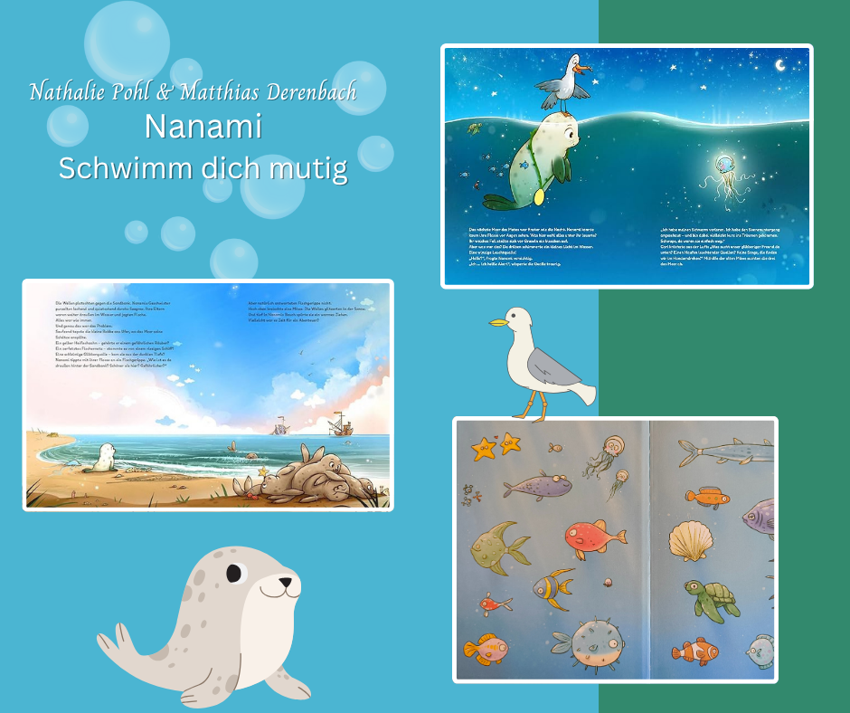 Nanami – Schwimm dich mutig ist ein wunderschön illustriertes Bilderbuch mit vielen wichtigen Botschaften, die uns Leser:innen Mut macht und zeigt, dass wir alle etwas erleben oder erreichen können, wenn wir uns einfach trauen, den ersten Schritt zu machen. Nanami schwimmt durch die Meere, begegnet vielen anderen Meeresbewohnern und lernt viel über Freundschaft, Vertrauen, Geduld, Mitgefühl und Stärke.